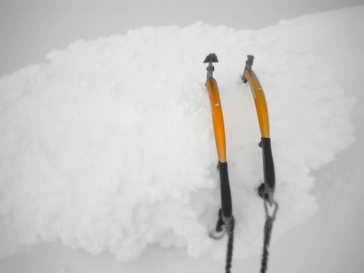 Na vrhu Grintovca. Smerni kamen je bil neuporaben, razen za dva pika.