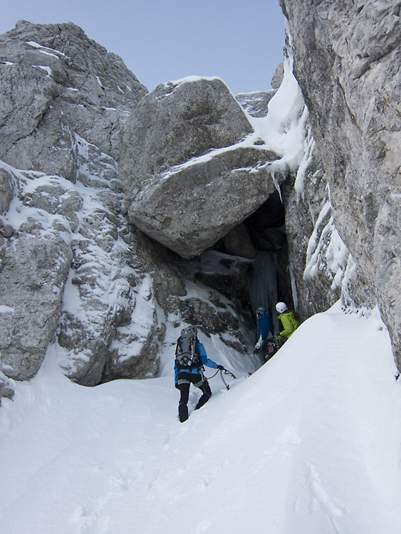Ampak nismo računal s tem, da ga je tok premalo. Hmmm - kako zdej prit čez ta balvan?