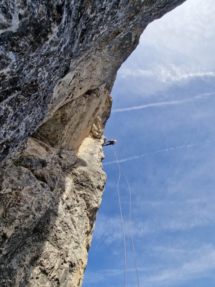 Smer je odlično navrtana, kratka in konstantna. Skala je dobra, le v zadnjem cugu malo krušljiva, sicer pa zelo lepa in da tisti pravi občutek na vrhu. Priporočam!😊