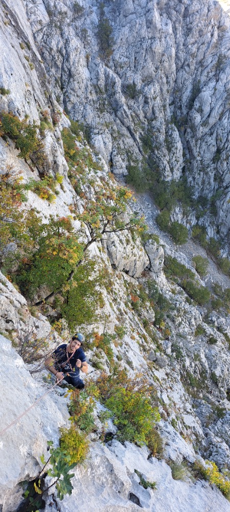Začel sem jaz (5c), potem Gašper potegne 2 cuga. Potem jaz 2, Gašper se v drugem 5c obrne in grem jaz do konca naprej.
