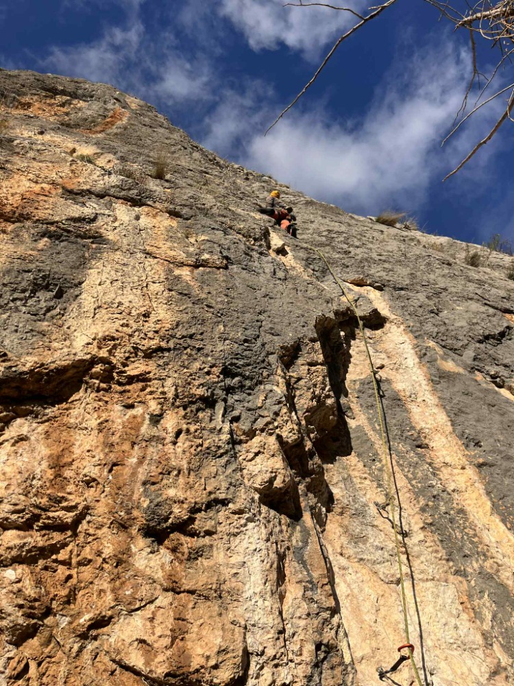 Bla mi je za popi*** težka, začetni previs je še najlažji. Drži praktično ves čas do vrha, parkrat bil zelo na meji, ampak je pa lepo berljiva in se jo da sajtat.