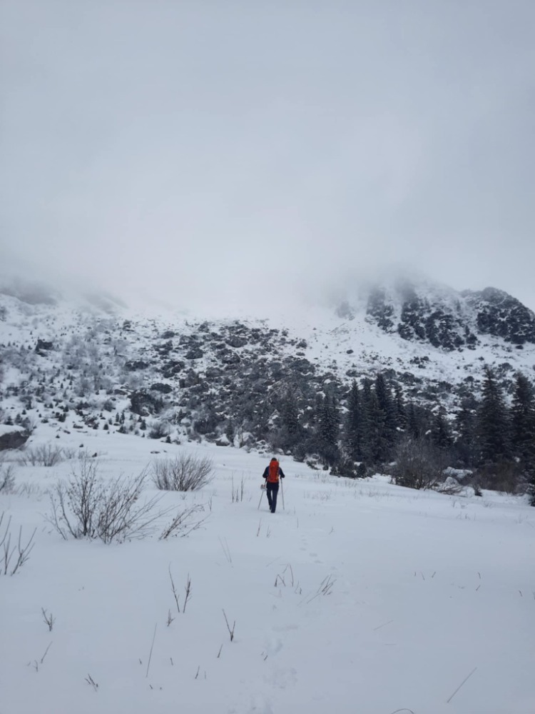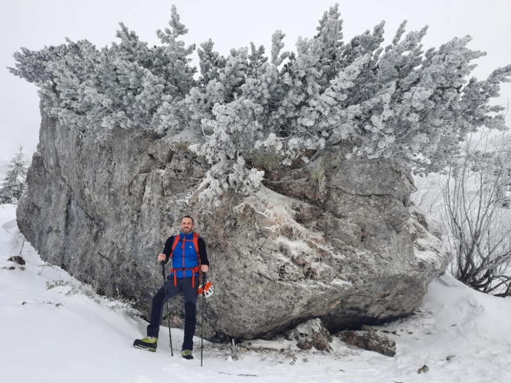 Zamislila sva si zimski pristop po običajni poti. Oskrbnik Orožnove koče nama je priporočil bolj zanimivo, direktno (in varno) zimsko pot po eni izmed grap (ime sva našla šele doma). Čeprav so po poti pred dnevi že hodili, je veter napihal sneg in popolnoma zakril sledi. Tako sva v grapi malo plavala v celcu, malo lezla po slabem "ledu" in se oprijemala vejic, ki so mestoma gledale iz snega (1 cepin pa to). Sestopila sva po grebenu (slika spodaj), brez Locusmap pa bi se v megli izjemno težko znašla. Super tura - ne zgodi se velikokrat, da si nekje "prvi" ![]()