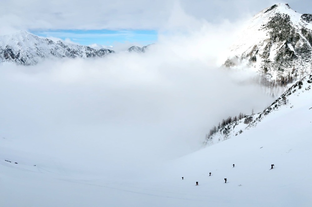 Delaka smo kar gnal v klanc, tko da je omagal 150 višincev pod vrhom žleba. Smučarija dobra. Na vrhu žlebu malo klože, ko prideš ven iz žleba pa res dobr sneg, zato smo šli še na škrbino in sneg je bil spet odličen, le malo je padla vidljivost zaradi megle.
