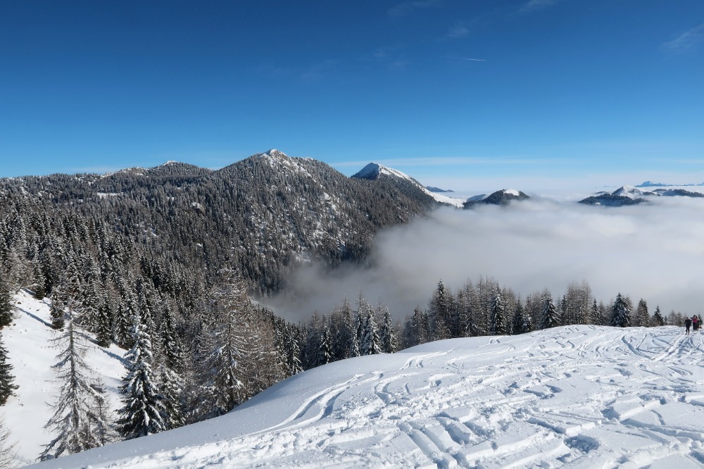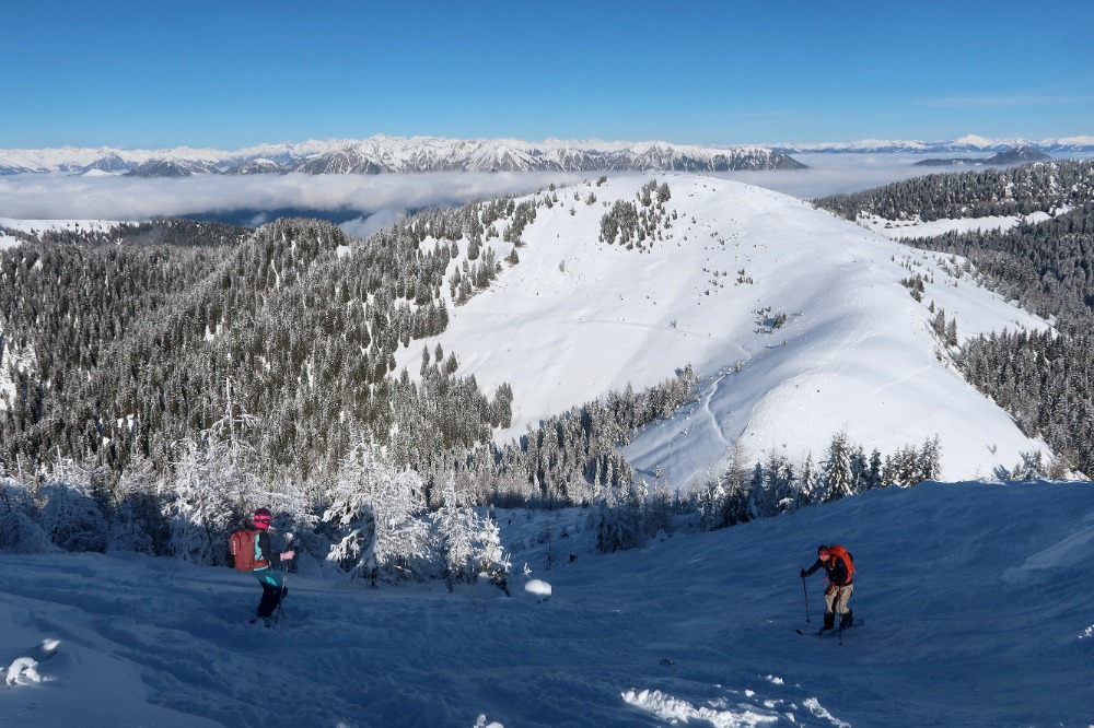 Danes so vsi turni smučarji imeli isti cilj - Monte Cocco ali pa sosednja Cima Bella. Ker smo bili relativno zgodnji, smo vseeno našli nekaj nedotaknjenega snega po gozdu...