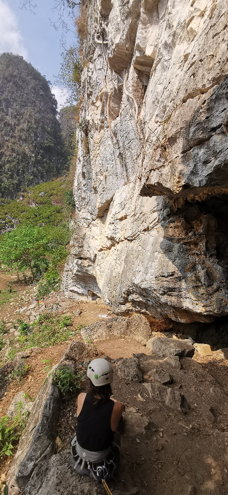 Gym bolder v tehnični bolder v tehnično plato. Zgleda napeta, ampak razkrije polno skritih grifov.