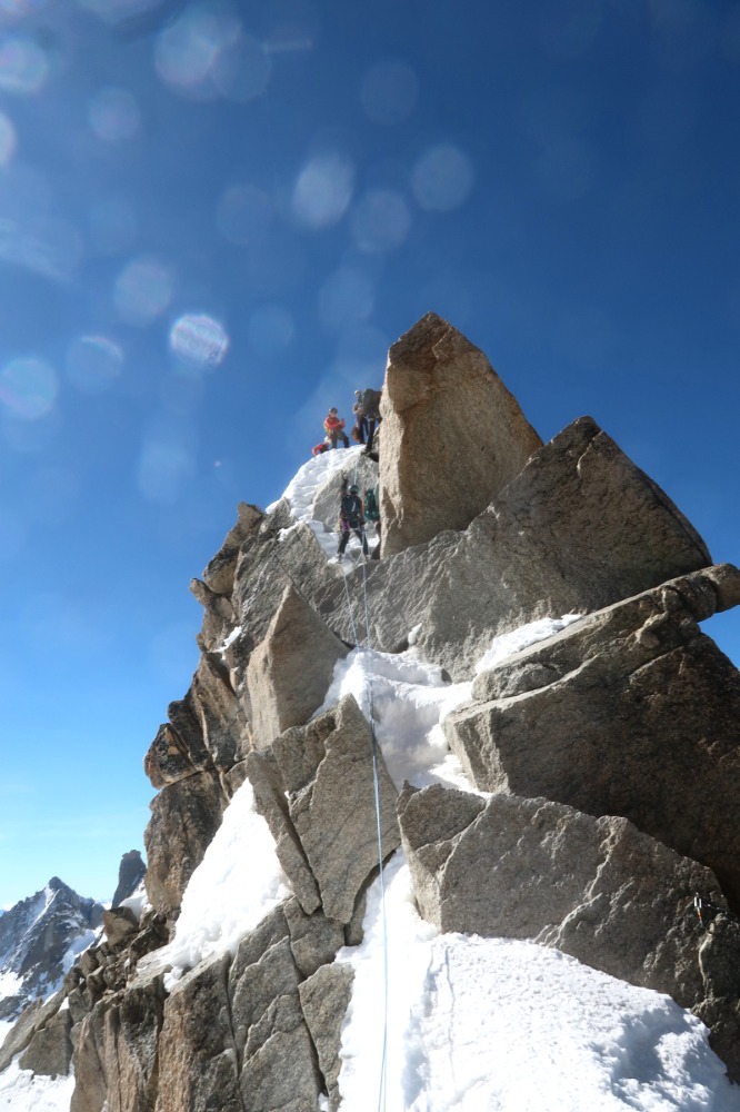 Prvič šel celotni greben... Počasna v prvem delu, ko je bolj štamfarija in sva zaradi manj zraka dihala na škrge... Na abzajlih in plezalnih delih sva združevala cuge in sva potem prehitevala GV naveze...