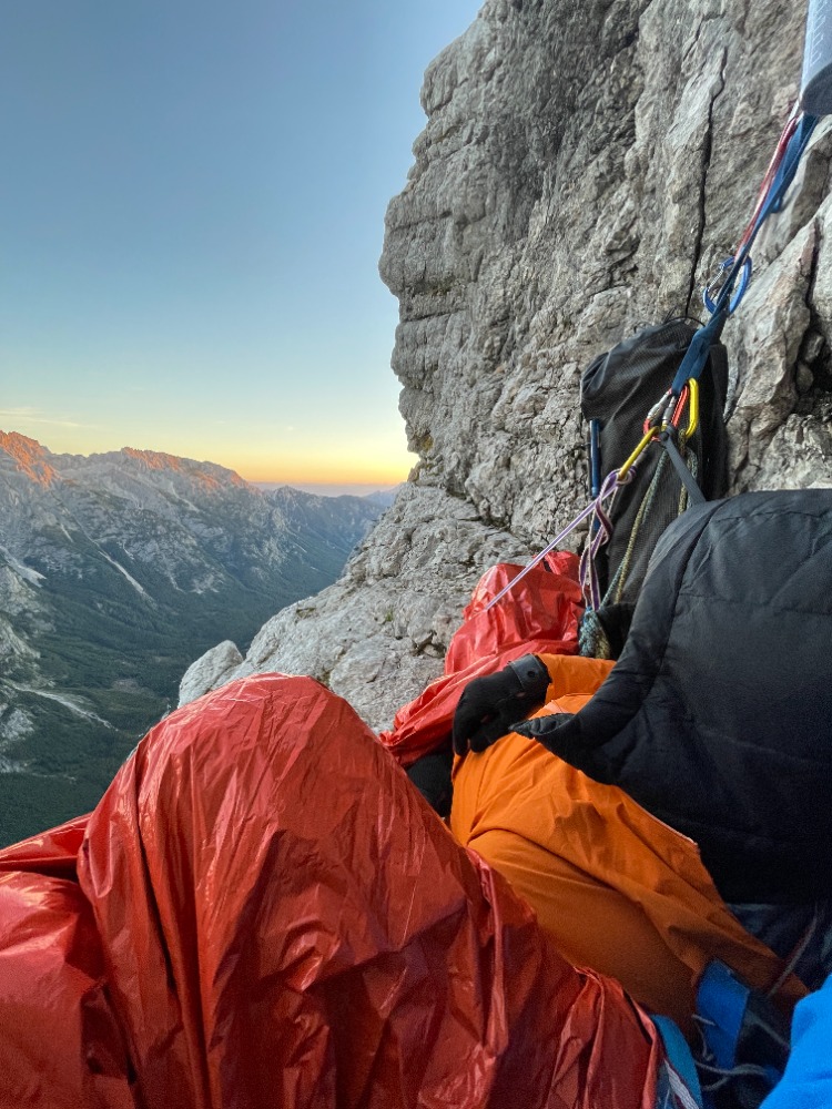"Vem da danes bo srečen dan, to sem začutil že zjutraj." Ta zjutraj je bil en dan prej, v soboto. Vzpon sva končala v nedeljo. Kot mlajša pripravnika sva se raje navezala na delih, kjer se marsikdo ne bi. To sva "plačala" s časom, saj sva utrujena bivakirala 30m pod izstopom iz smeri. Better safe than sorry. Odlična izkušnja in lekcija, da je treba povaditi hitrost v krajših smereh.