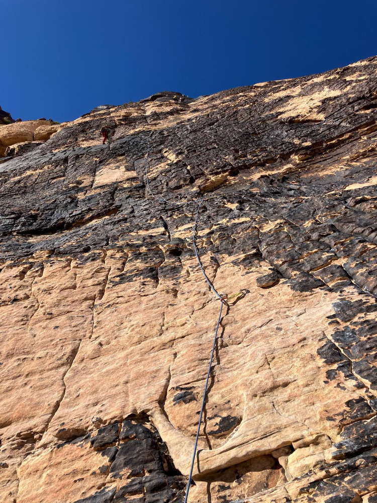 Šnitenbloken strukture na steni so ful hude in tekoče za plezat, ampak manj ostre kot zgledajo. Vseeno pa občutek v stilu kakšne Via M Speciale oz Visokopoliške Diretissime.