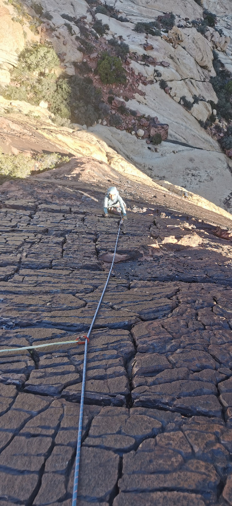 Sva šla preverit kaj je bilo Magnusu tok strašno ko je soliral s Honoldom in ugotovila, da je poč kr gladka in zlizana. Seveda nisva želela dostopat do polovice stene, tako da sva naredila linkup dveh smeri, tud Myster Z se je izkalal za presenetljivo lepega.