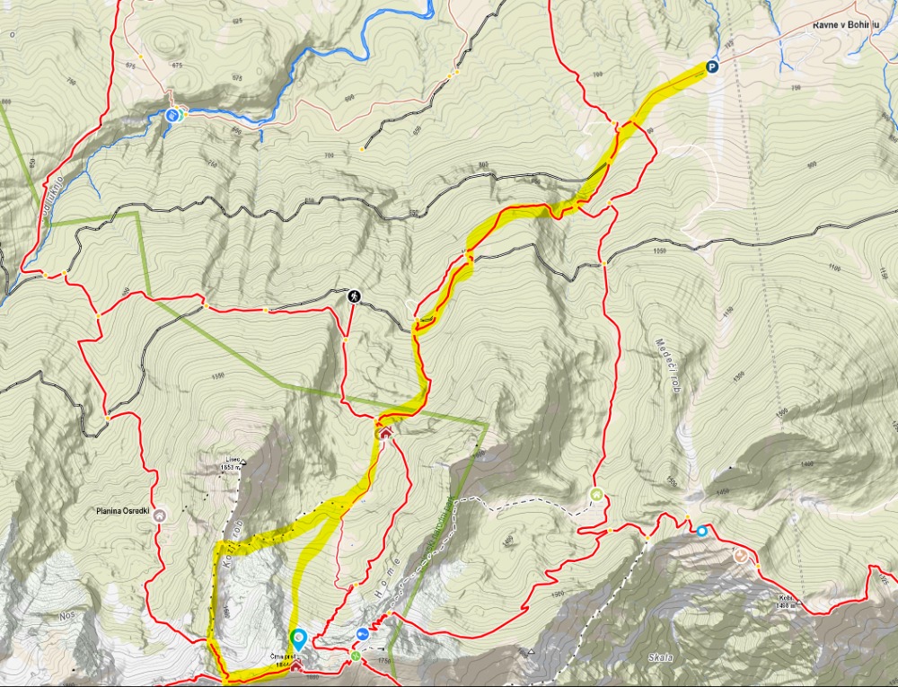 Zamislila sva si zimski pristop po običajni poti. Oskrbnik Orožnove koče nama je priporočil bolj zanimivo, direktno (in varno) zimsko pot po eni izmed grap (ime sva našla šele doma). Čeprav so po poti pred dnevi že hodili, je veter napihal sneg in popolnoma zakril sledi. Tako sva v grapi malo plavala v celcu, malo lezla po slabem "ledu" in se oprijemala vejic, ki so mestoma gledale iz snega (1 cepin pa to). Sestopila sva po grebenu (slika spodaj), brez Locusmap pa bi se v megli izjemno težko znašla. Super tura - ne zgodi se velikokrat, da si nekje "prvi" ![]()