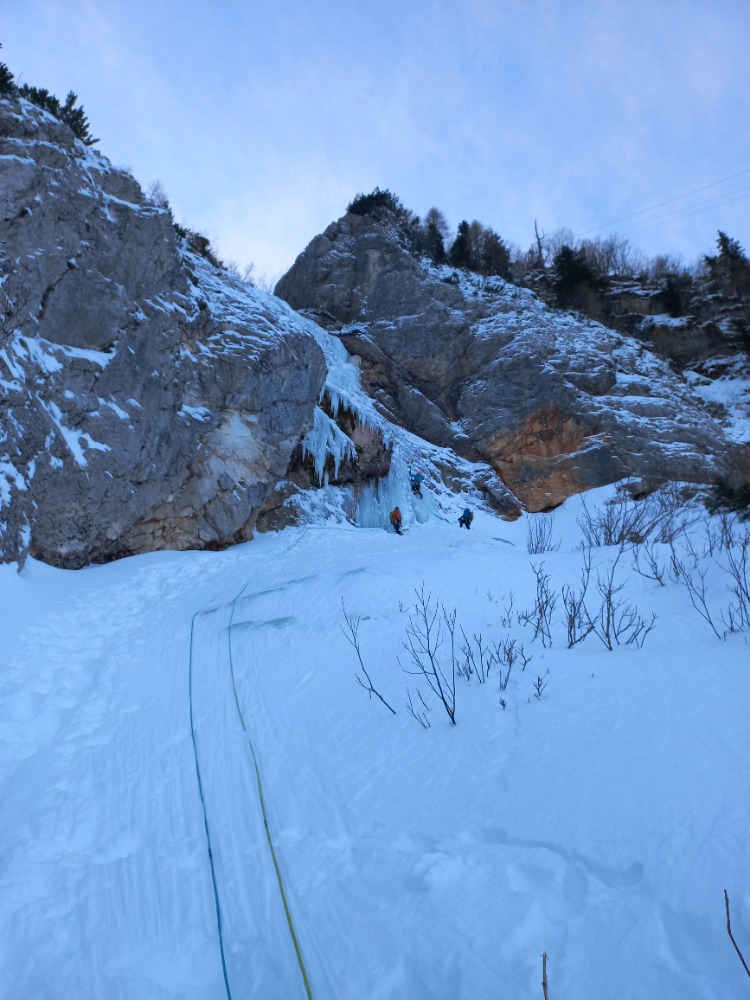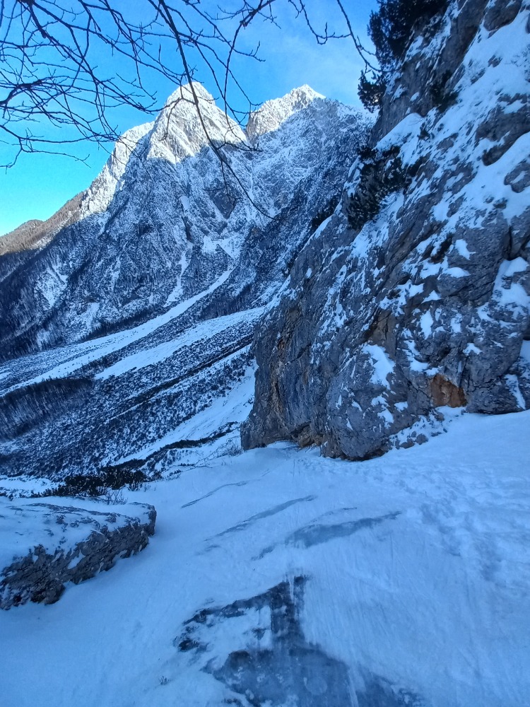 Kar solidno narejen, edino začetek drugega raztežaja kar siten, ker je bilo zaradi slabega snega treba praskati po skali. Sicer pa mraz in gneča