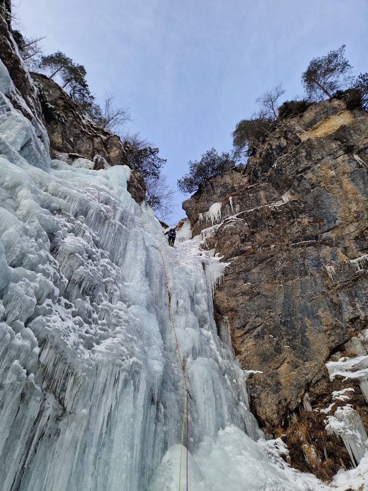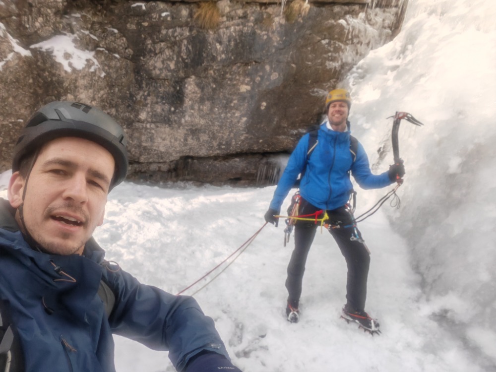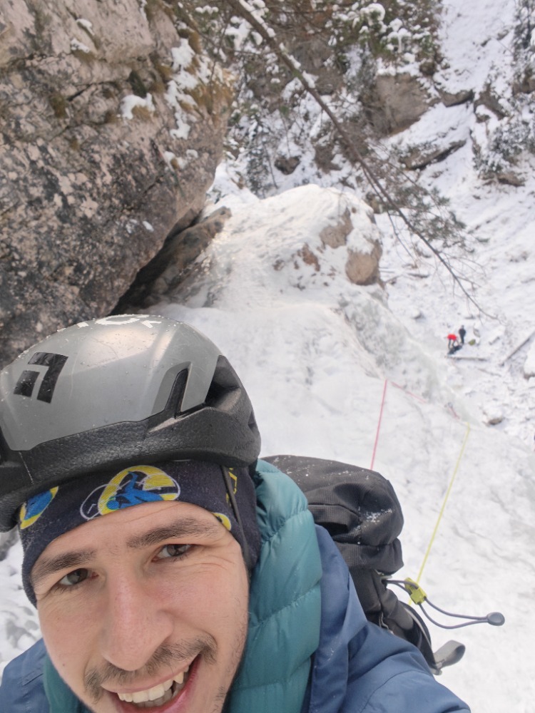Kljub zgodnjemu štartu sta nas dve navezi prehiteli. Spodnji del lepo narejen... Vmes malo "pohajkovanja" po položni grapi, vmes še nama je udeležil led v tolmunih tako, sva zavila v desni krajši del Slapu. In hop do avta kjer sva odvrgla premočene čevlje.