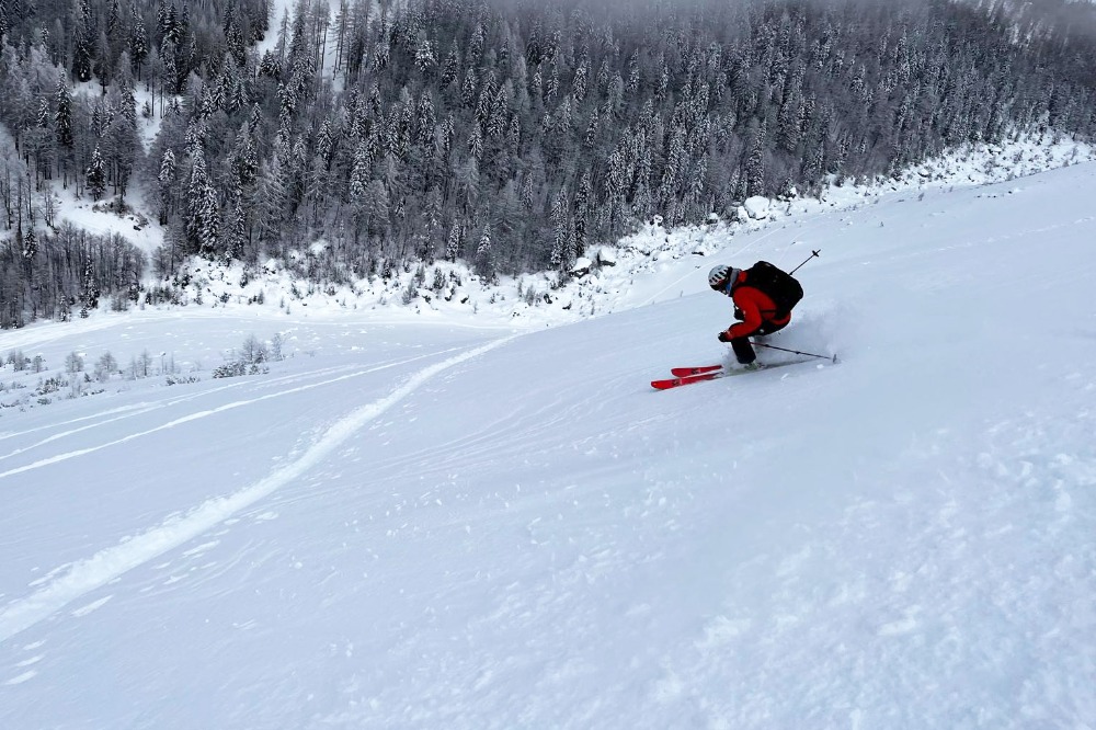 Delaka smo kar gnal v klanc, tko da je omagal 150 višincev pod vrhom žleba. Smučarija dobra. Na vrhu žlebu malo klože, ko prideš ven iz žleba pa res dobr sneg, zato smo šli še na škrbino in sneg je bil spet odličen, le malo je padla vidljivost zaradi megle.