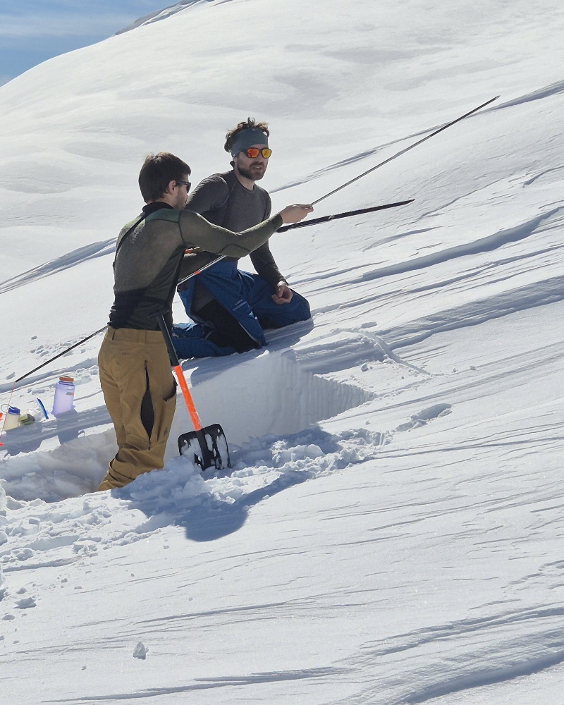 4WD taksi nas zapelje do izhodišča kakšne pol ure iz Mestie. To je tudi naše prvo srečanje z Gruzijskimi cestami, zato ga prosimo, da nas odloži krepko pred predvidenim izhodiščem. Začudeno nas pogleda, a se ne brani. Prvo se vzpenjamo po cesti, nato zavijemo na travnata pobočja, ves čas po že dobro vhojeni špuri. Na vrhu planote se nam od bogvekje pridruži mali kuža. Razmere so prav poletne. Del ekipe zagrize še dodatnih 400m do vrha prelaza, od koder se prikaže mogočna Ušba, sam pa raje naredim še en ECT. Če že nosim žago… Spust je kar zhteven, saj je južna stran skorjasta in precej zvožena. No, v kakšni kotanji pa pod nogami začutimo tudi pršič.