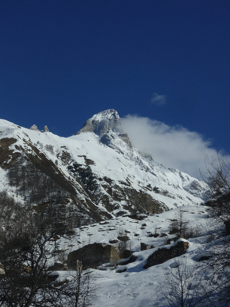 Spodnji del vzpona obcudujemo mogocno Ushbo, nakar pot zavije proti vzhodu. Vedno manj pomrznjena skorja z višino prehaja v pršič. Z Mihom ponovno narediva ECT, medtem ko ostali brezbrižno hitijo k vrhu. Sprašujem se, če ne bi bilo bolj smiselno, da najhitrejši delajo test. Tako bi ravno skupaj prispeli na cilj. Mimo pride lokalec in vpraša, če sva gajda. Na nek način verjetno sva. V smislu, da skrbiva za varnost sebe in tovarišev. Italjan na splitboardu se nama zahvali za dobro delo. Hočem mu reči, da naj v zahvalo sam izkoplje luknjo, pa se ugriznem v jezik. Ni vsakemu dano. Ko prideva na vrh, so ostali že odstranili kože in nama smučajo nasproti. V bistvu jih tudi rezultat testa ne zanima. Ali je bil sploh narejen, ce ne vedo za rezultat? Ampak nekdo ve. Jaz vem in s tem omogocam njihovo brezskrbnost. In jim privoščim varen smuk. Tudi midva se spustiva. Ker sva zadnja, je powder malo bolj pofuran, kot bi bil, ce ne bi delala prereza, a prav nič nisva zagrenjena.