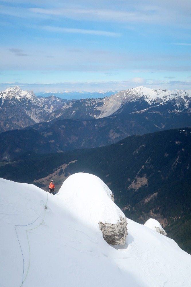 Dve navezi danes v Kramarci (in eden je potem še odsmučal z vrha skozi Peto žrelo)... Vstop čez skok, ki ni narejen, ampak je vseen super. V osrednjem delu smo sledili izraziti grapi naravnost in tako šli mimo bivaka preveč levo. S prečenjem v desno smo bili nazaj v smeri. Višje kot greš, bolj je bil sneg spihan, tudi sneg, ki je zapadel cca tri tedne nazaj. Nekje na vrhu smeri sem izgubil telefon. Sestop zaradi cokel res sitnica.