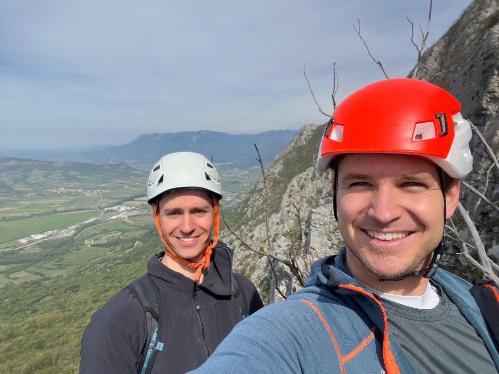 Sva rekla da stisneva v soboto vsaj eno smer, če smo že ravno v Vipavi. Jakob predlaga Piramido in sva pač zarinila. Dobra družba in lepa plezarija - sploh prva dva cuga