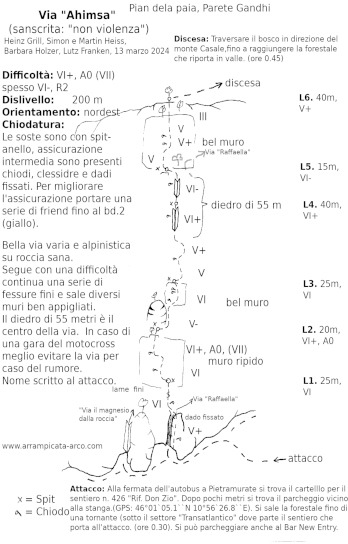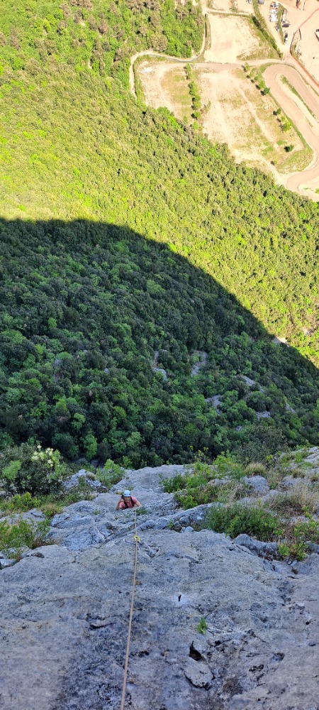 Z željo po plezanju variante smeri "Via di magnesio dalla roccia" - "Variante dell'erba" sva po prvem štantu zavila desno in prečila na v vodniku nevrisano smer. Prečenje je blo suffer, naprej sm pa z 80m štrikom potegnil zadnje 5 cuge naenkrat: izjemno lepa plezarija. Lepo nabit, dost štrikov, super skala.